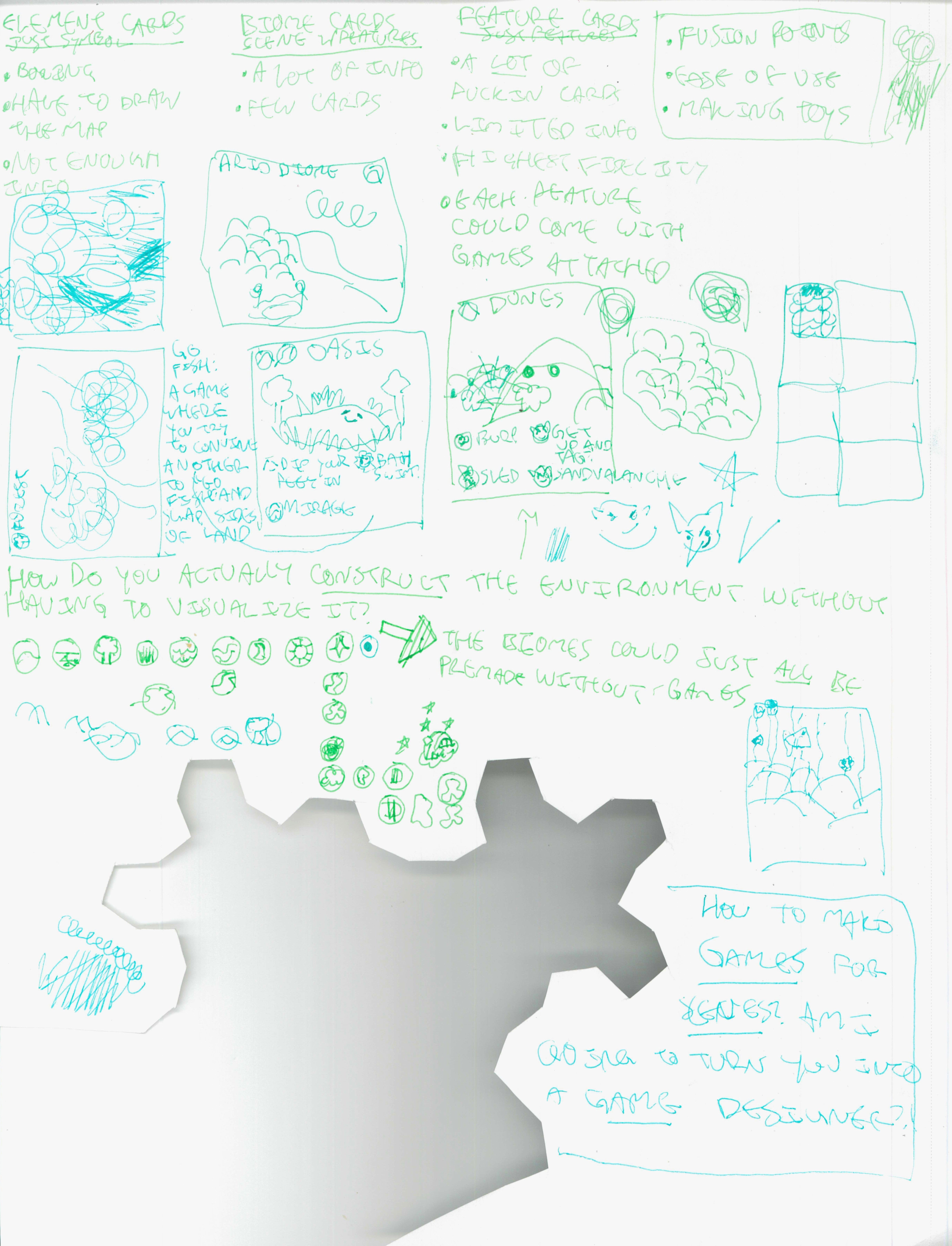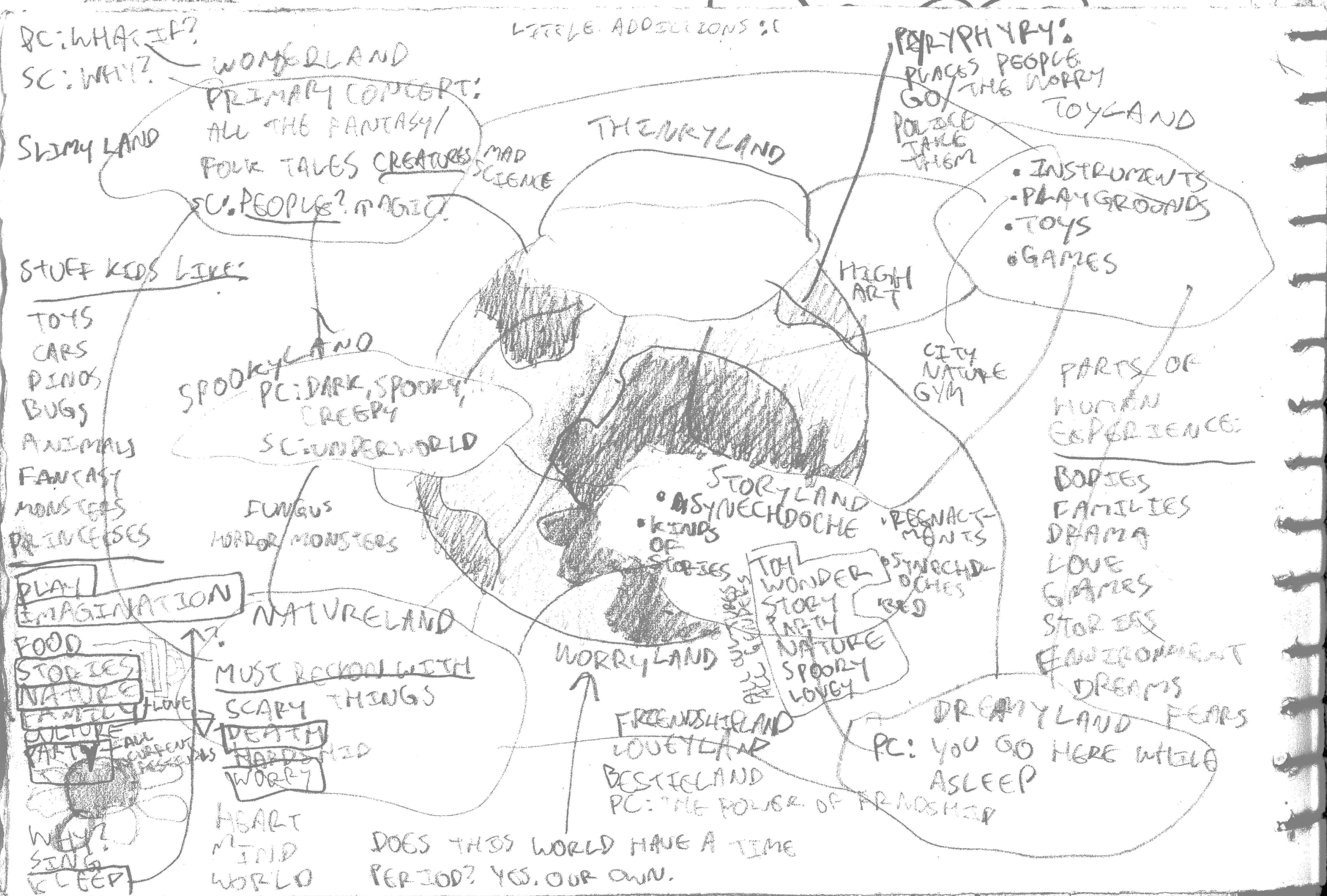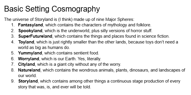 My first idea in this direction was a world filled with sentient toys and crafted landscapes. Knowing that I wanted a setting with more than one kind of landscape, I tried to figure out what the different regions of the world would be.