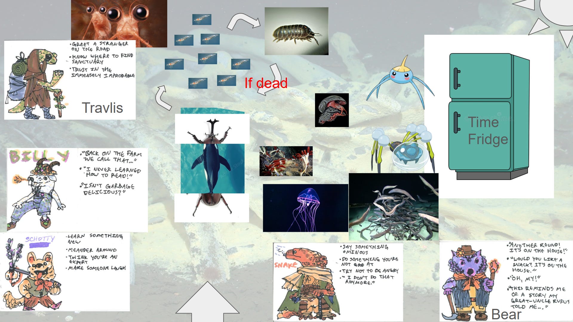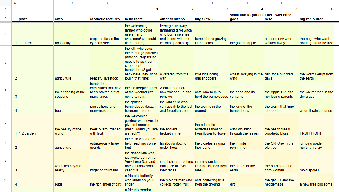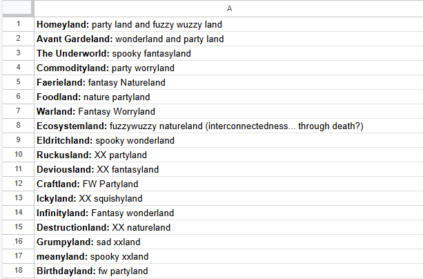 So I spent most of my prep time in between Wanderhome sessions trying to figure out how to turn a sad-type world into one designed to party. This started with revising the original material. ↓