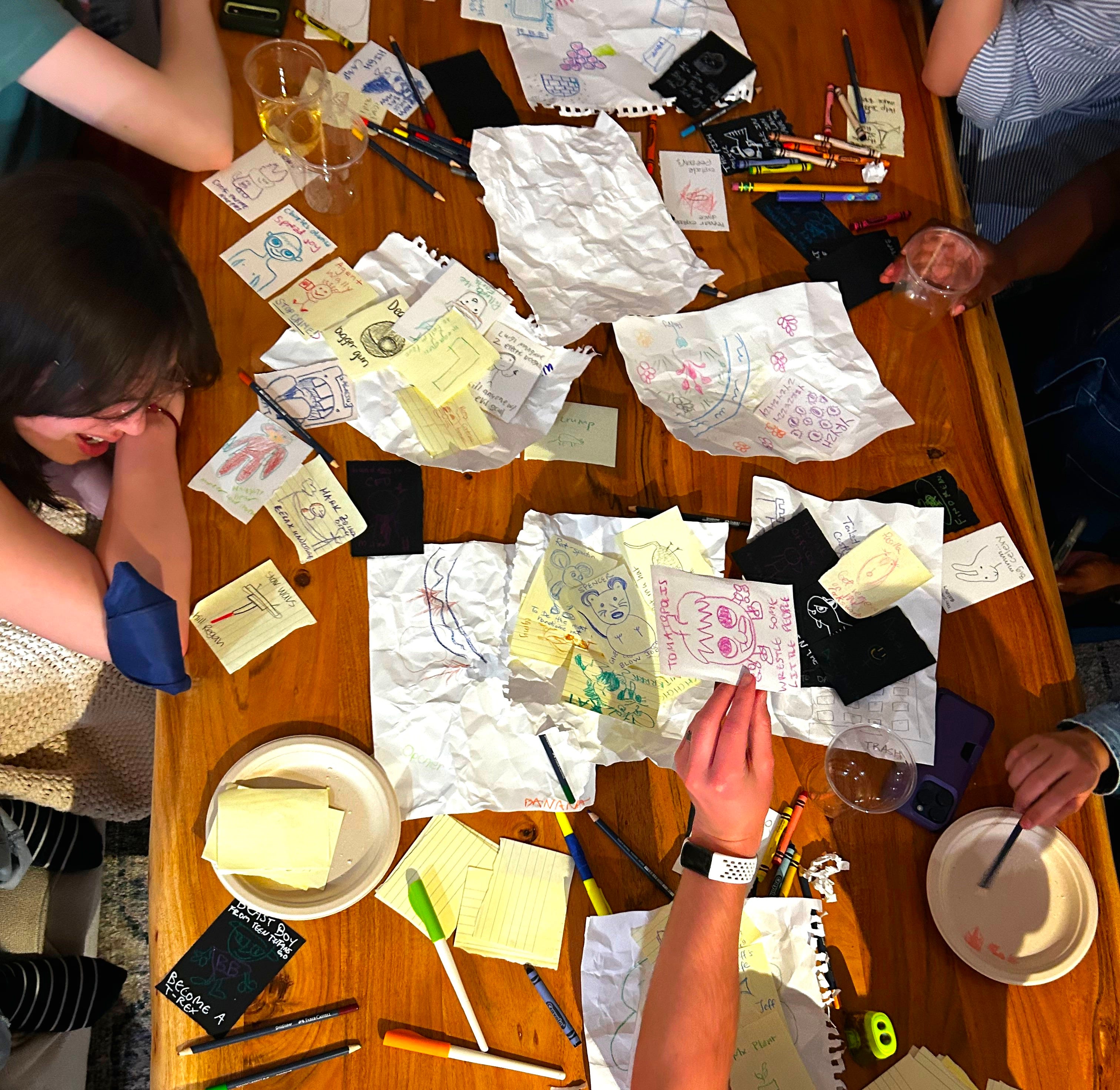 But because a game of Cartoodle typically has seven to ten simultaneous plotlines by the end, it can be hard to remember what happened last week. Let’s just start with a clean slate instead!