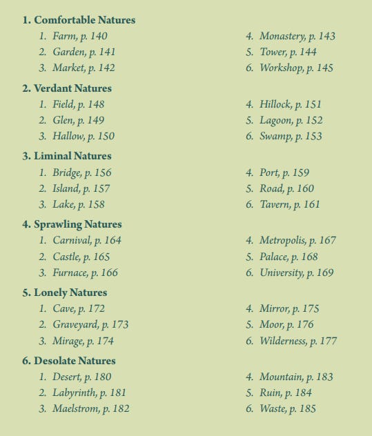 At the beginning of every episode, you create the location the characters are about to explore. Looking at Wanderhome’s location generator can give us an idea of how the designers want you to feel while playing the game. ↓
