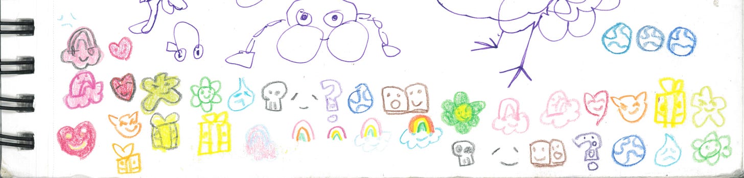 Eventually I realized that not accounting for our “negative” emotions would overlook a huge part of the human experience, so I added Sadland, Quietland, and Deviousland to the mix. Below are the current iteration of symbols for the game’s twelve dimensions, called Lands.