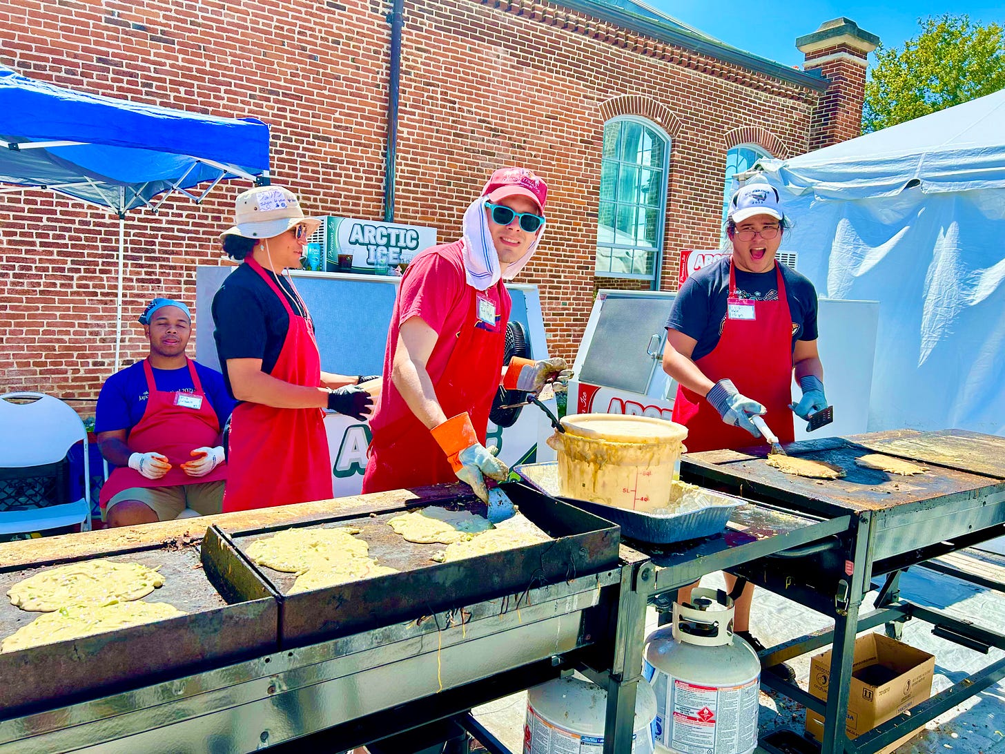 My parents have been selling okonomiyaki and yaki soba at the Festival for over 30 years. My dad is very proud to serve traditional festival food, which I also got to try when I went to Japan in 2015. Here’s a picture from this past weekend, before a certain COUSIN of mine kicked me off the GRILL because my PANCAKES weren’t GOOD enough for him. ↓