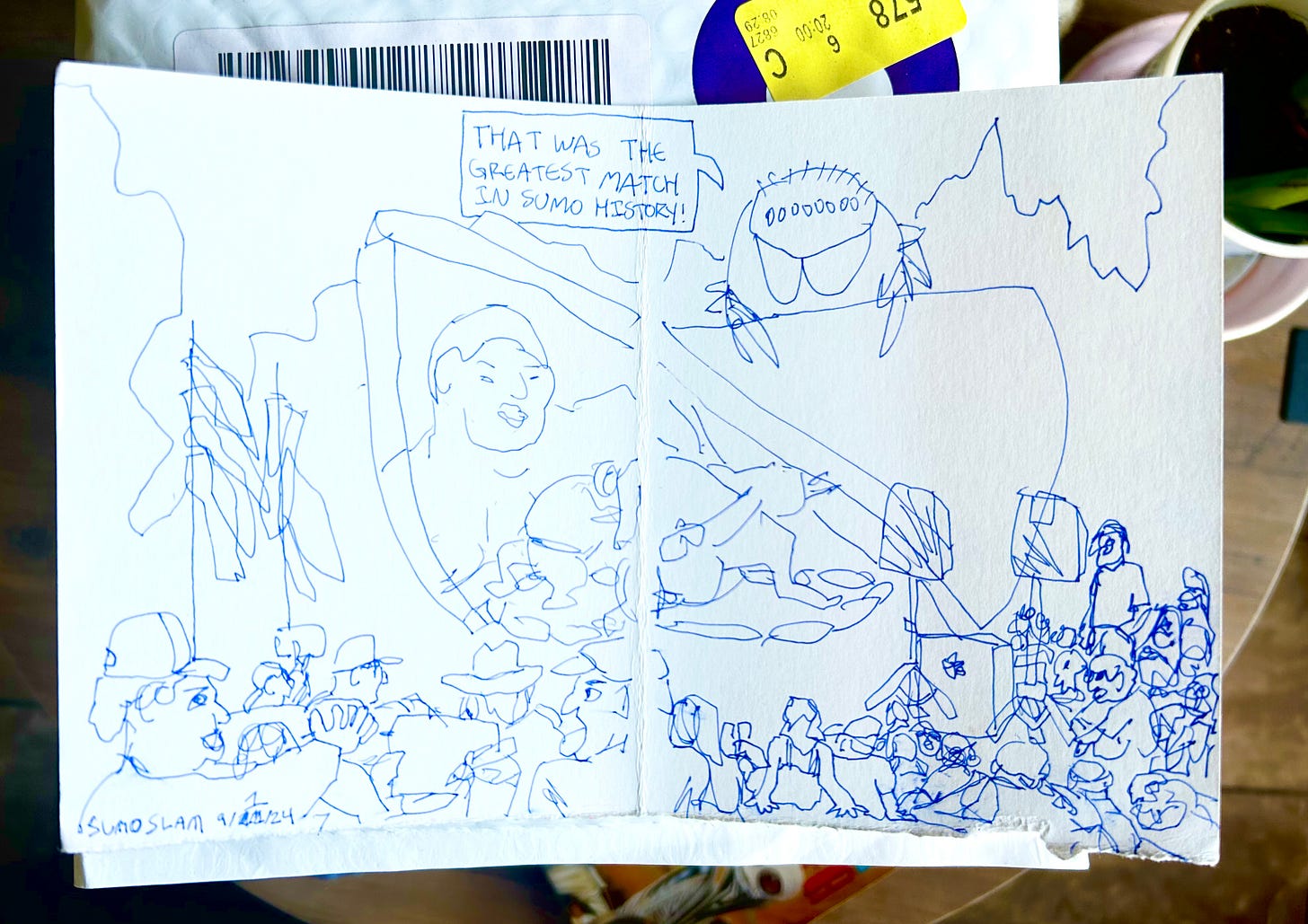 I also got to watch sumo for the first time! And not just that, but what the announcer called THE GREATEST MATCH IN SUMO HISTORY! They guy almost lost his shirt!