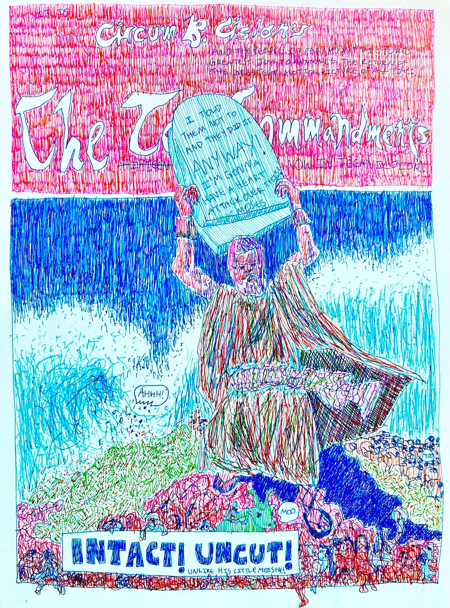 I’ve been really into drawing with non-black pens recently. Above is a parody of a movie poster hanging in my parents’ house. Here’s the original: